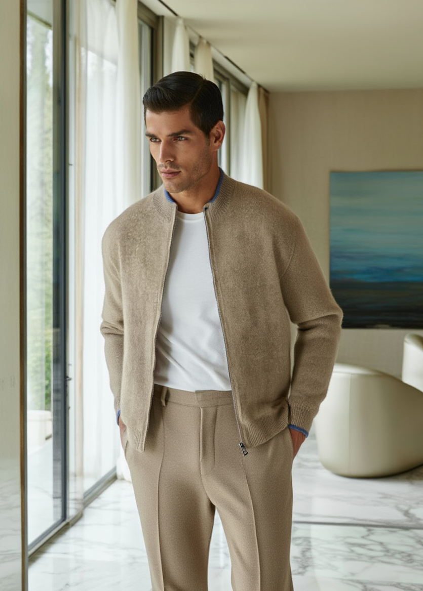 VelloriWool® blends ultrafine softness with natural warmth. Sourced from select merino farms in the rolling hills of Toscana and finished in northern Italian mills, it reflects a modern approach to knitwear, pure, lightweight, and quietly elevated. The result is a breathable, polished knit crafted for year-round comfort.